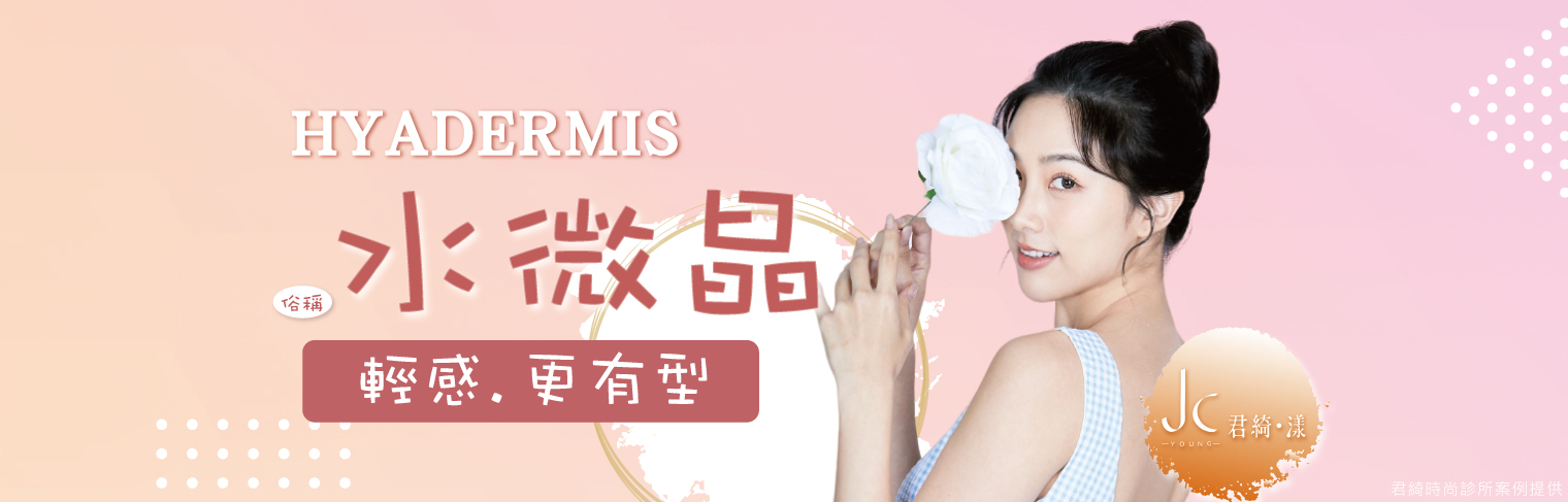 「海德密絲HYADERMIS」下稱「水微晶」,是新一代的皮下填補劑,提昇了玻尿酸的黏度與彈性,創造出具有保濕力及彈力的晶體式凝膠,總共分為四種劑型,能修飾深淺不同的凹陷皺紋及填充欲豐滿之臉頰、嘴唇、下巴與雕塑鼻型、重建臉部輪廓等多種功能。