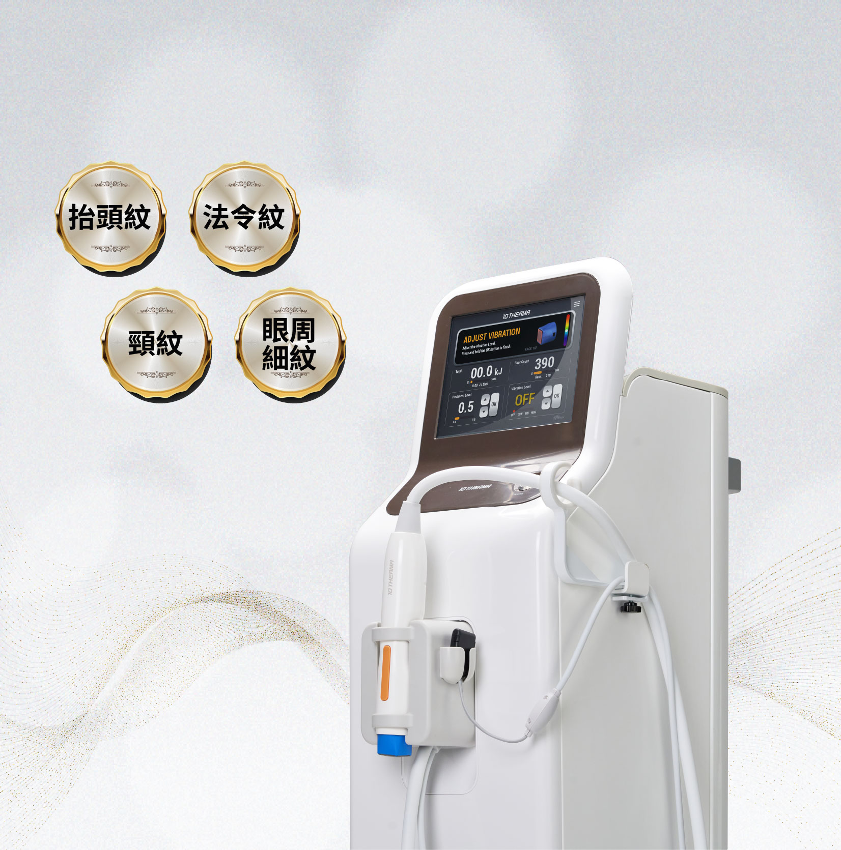 利用高能聚焦超音波的能量作用在肌膚的不同的深淺度,進行拉提及緊實,治療能量、參數設定都可以依據不同皮 膚狀態調整,客製化鎖住青春。