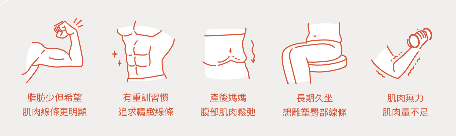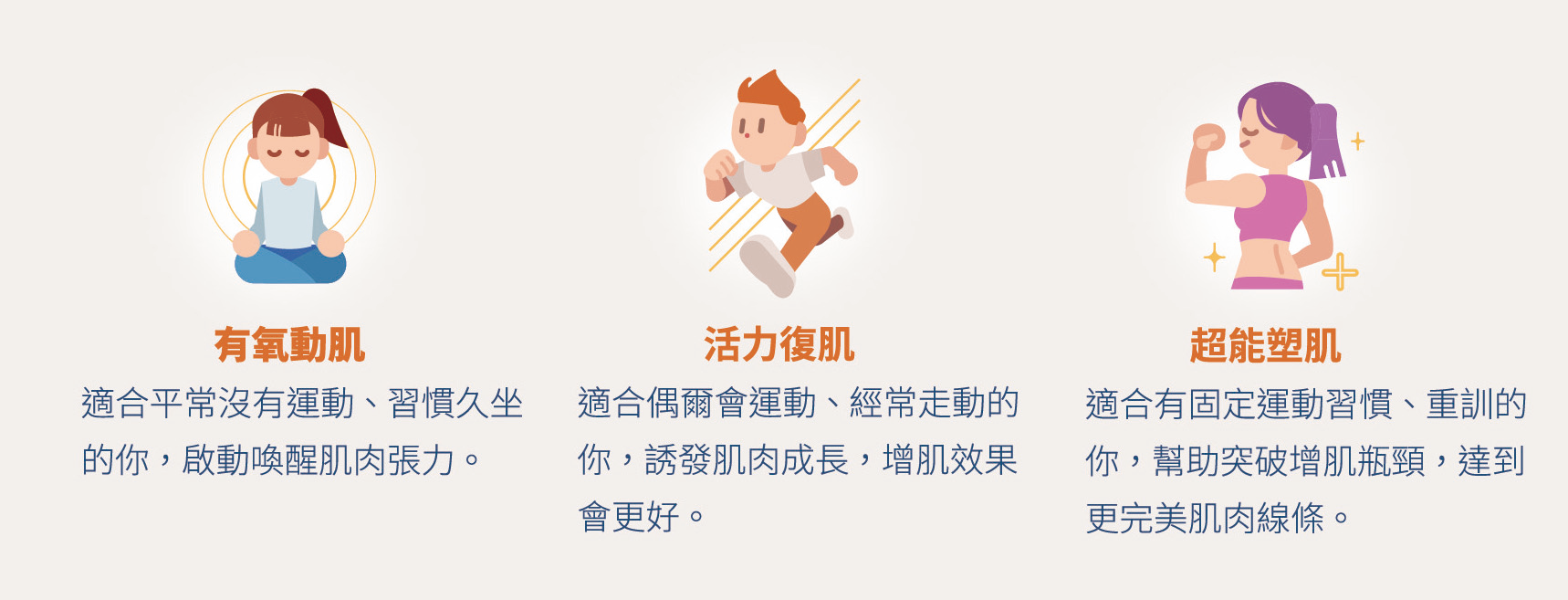 優力肌塑能根據不同的體態、運動習慣,策略性定製三種訓練模式:
